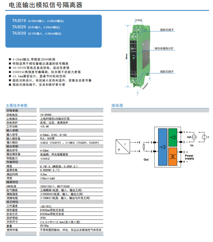 TA3019,TA3029,TA3039,電流輸出模擬信號(hào)隔離器