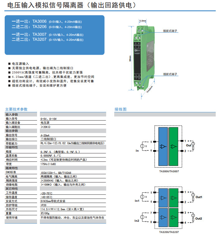 TA3006,TA3206,TA3007,TA3207,電壓輸入模擬信號(hào)隔離器