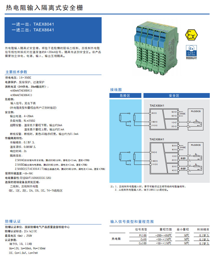 TAEX8041,TAEX8641,熱電阻輸入隔離式安全柵