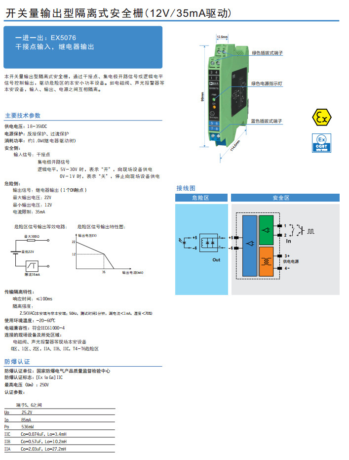 EX5076,開關(guān)量輸出型隔離式安全柵