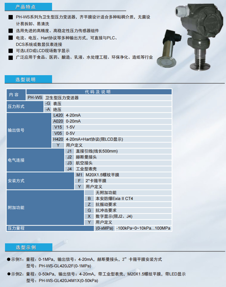 PH-WS-GL420,PH-WS-GA020,PH-WS-GY,PH-WS-GL420J2F,PH-WS-GL420J4M1X,PH-WS,衛(wèi)生型壓力變送器