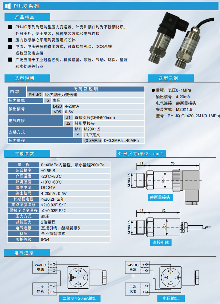 PH-JQ-GL420J1M1,PH-JQ-GL420J1Y,PH-JQ-GV05J2M1,PH-JQ-GV05J2Y,PH-JQ,經(jīng)濟(jì)型壓力變送器