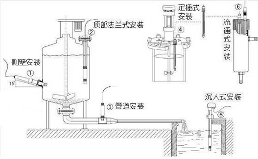 為保證電極在管路上正確測量出pH值,應避免測量池間出現(xiàn)氣泡而造成數(shù)據(jù)失準,請嚴格按下圖安裝:, ,