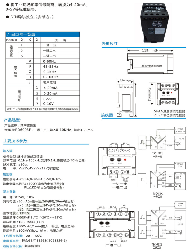PD6003F1A1,PD6003F1B2,PD6003F2C1,PD6003F2C2,PD6003F5B5,PD6003F5E7,PD6003F,頻率變送器