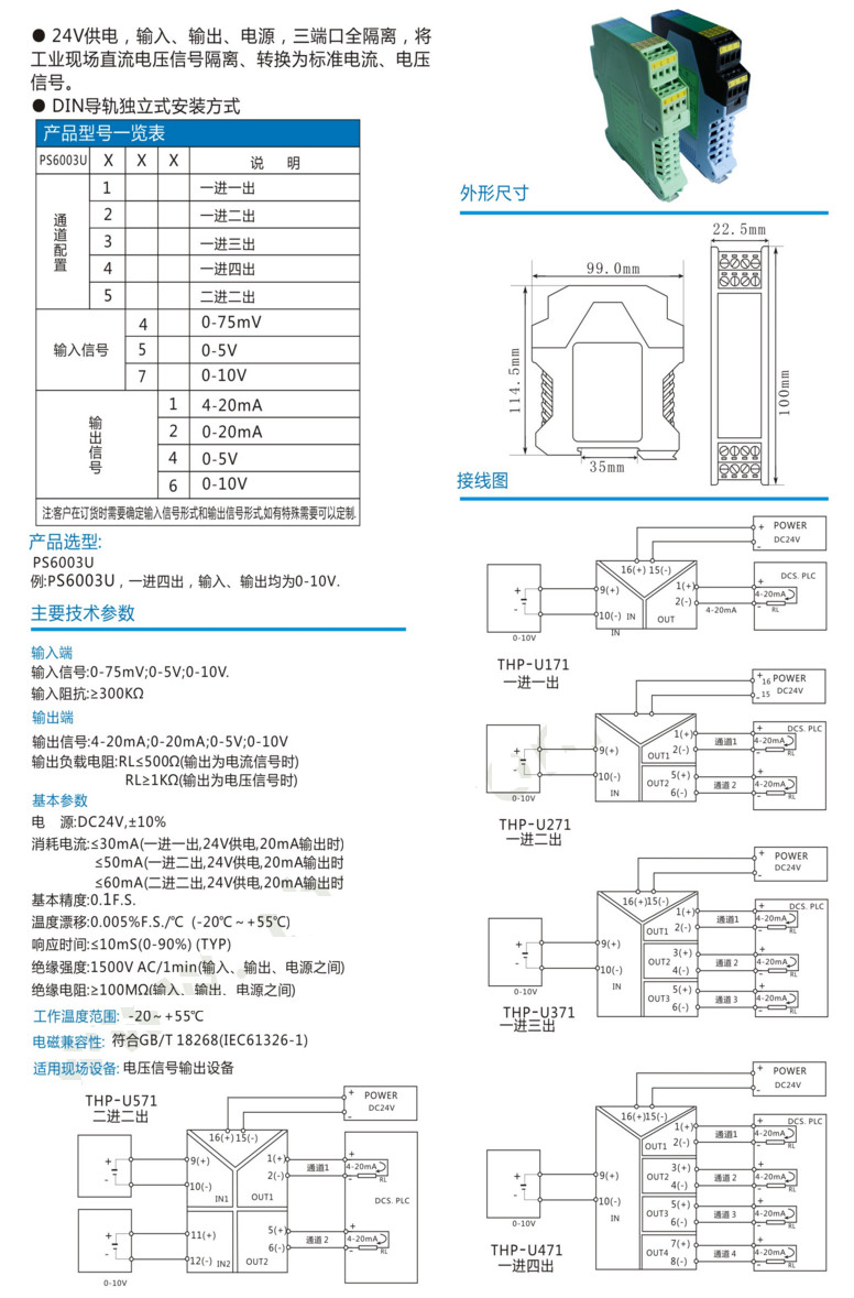 PS6003U141,PS6003U172,PS6003U254,PS6003U346,PS6003U576,PS6003U,多路電壓信號(hào)隔離配電器