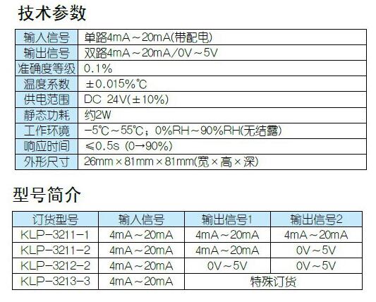 型號(hào): KLP-3211-1,KLP-3211-2,KLP-3212-2,KLP-3213-3,KLP-321,現(xiàn)場電源信號(hào)隔離處理器(一入二出)