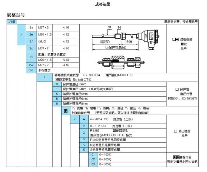 JWB/2a40,JWB/2e41,JWB/2f45,JWB/2x46,JWB/2a40/A,JWB/2a40/K,JWB/24,防爆型螺紋式一體化溫度變送器