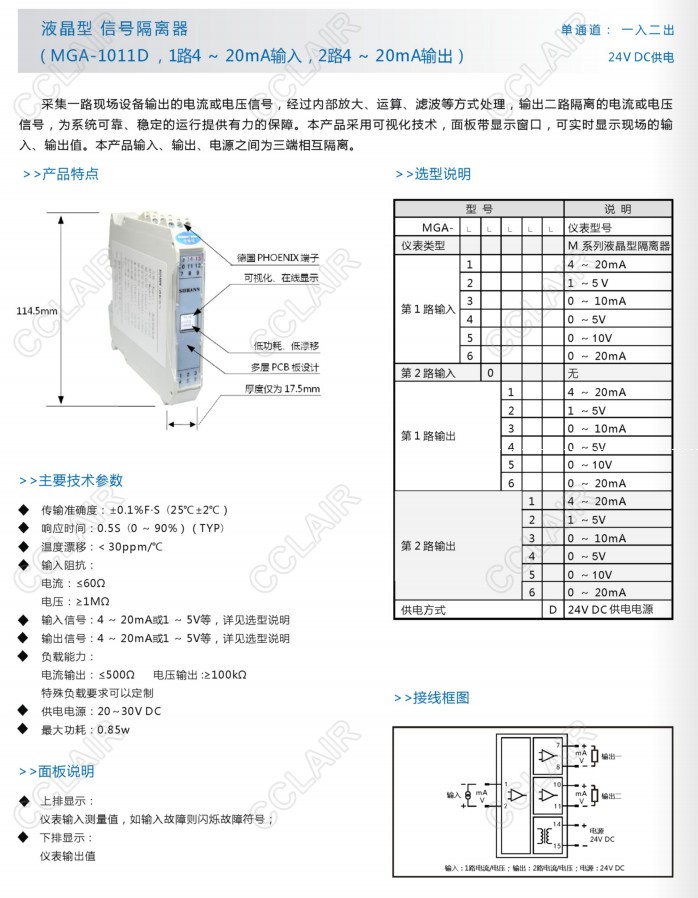 MGA-1011D,MGA-1035D,MGA-2034D,MGA-3015D,MGA-4046D,MGA-5053D,MGA-6065D,液晶型信號(hào)隔離器