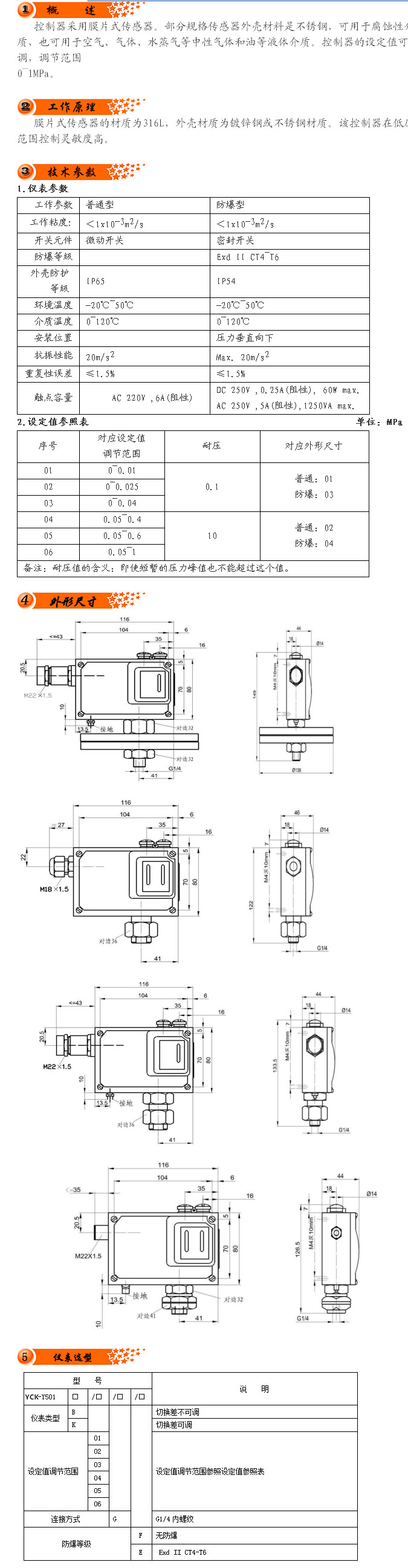 YCK-Y501B,YCK-Y501K,YCK-Y501,防腐型壓力控制器