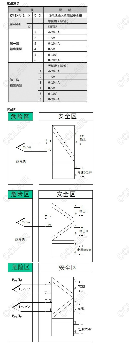 將來(lái)自危險(xiǎn)區(qū)的熱電偶或毫伏信號(hào),經(jīng)隔離變送輸出單路或雙路相互隔離的電流或電壓信號(hào)到安全區(qū),也可通過(guò)配置的通訊接口在安全區(qū)進(jìn)行串行通訊聯(lián)網(wǎng)。它是智能化的安全柵產(chǎn)品,具有在線故障自診斷功能,用戶(hù)也可通過(guò)專(zhuān)用手持式中文編程器或計(jì)算機(jī)對(duì)本產(chǎn)品進(jìn)行輸入信號(hào)類(lèi)型及輸出量程的設(shè)置。