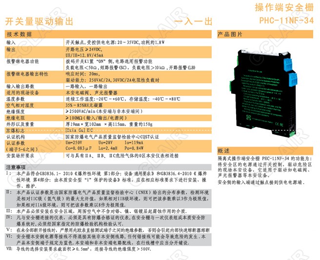 PHC-11NF-34隔離式安全柵
