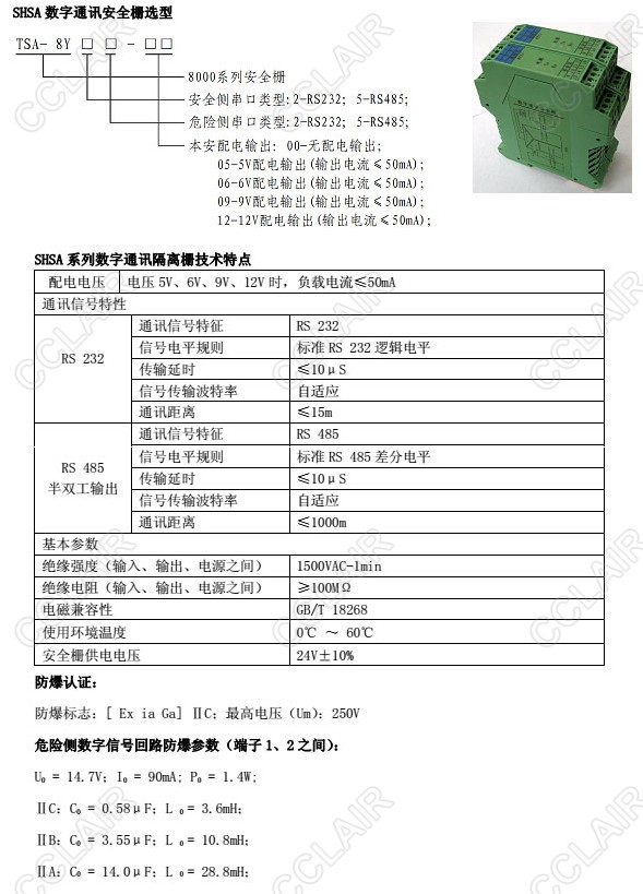 TSA-8Y22-00,TSA-8Y25-05,TSA-8Y52-06,TSA-8Y52-09,TSA-8Y55-12,數(shù)字通訊安全柵