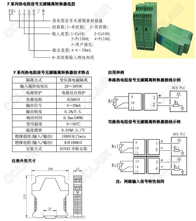 FZ-11A0/W,FZ-12A0/W,FZ-13A0/W,FZ-14A0/W,FZ-15A0/W,FZ-21A0/W,無源熱電阻信號(hào)隔離轉(zhuǎn)換器