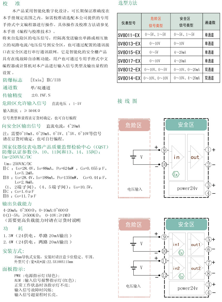SV8011-EX,SV8013-EX,SV8015-EX,SV8017-EX,SV8012-EX,SV8014-EX,SV,電壓輸入檢測端隔離安全柵