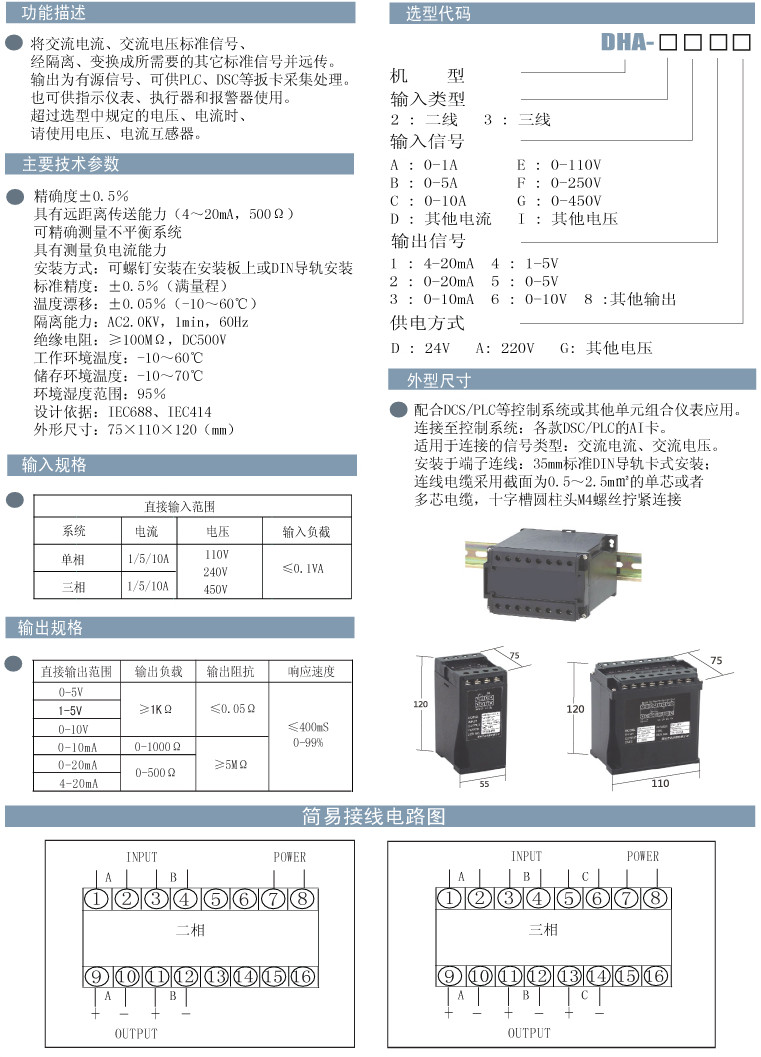 DHA-2A,DHA-2B,DHA-2C,DHA-2D,DHA-2I,DHA-3A,DHA-3F,DHA-3G,DHA-3I,DHA,三相電流、電壓變送器