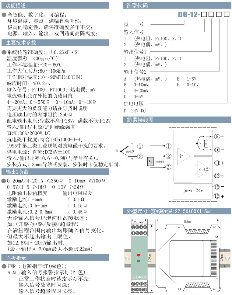 DG-12-11AD,DG-12-11ED,DG-12-12BD,DG-12-21FD,DG-12-22AD,DG-12,溫度信號(hào)一比一變送器