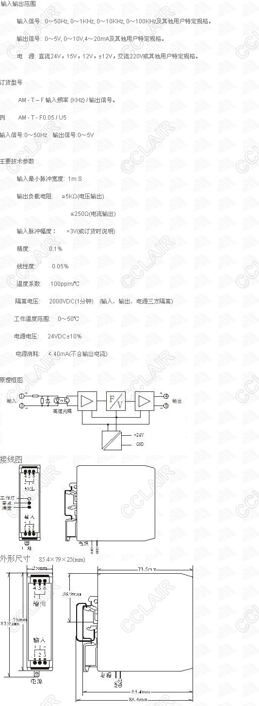 AM-T-F0.05/U5,AM-T-F0.05/I4,AM-T-F1/U10,AM-T-F1/I4,電壓電流頻率隔離轉(zhuǎn)換器