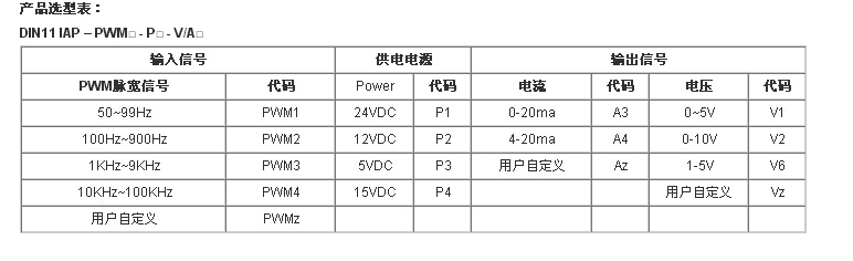 例3:輸入信號(hào): 20KHz PWM 供電電源:24V 輸出信號(hào):4-20mA 型號(hào):DIN11 IAP PWM4-P1-A4