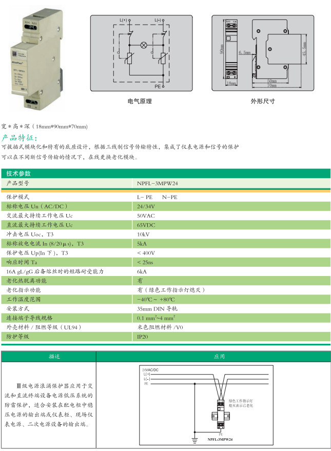 NPFL-3MPW24,24V交直流電源系統(tǒng)浪涌保護(hù)器(10KA)