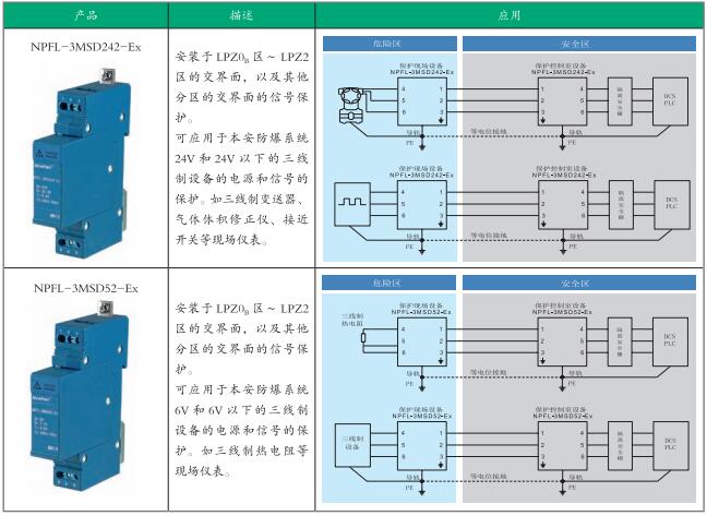 NPFL-3MSD52-Ex,NPFL-3MSD242-Ex,三線制本安型信號浪涌保護器(浮地)