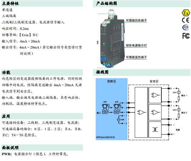 NPEXA-CM31S1S,NPEXA-CM31S1SV1,檢測端隔離式安全柵