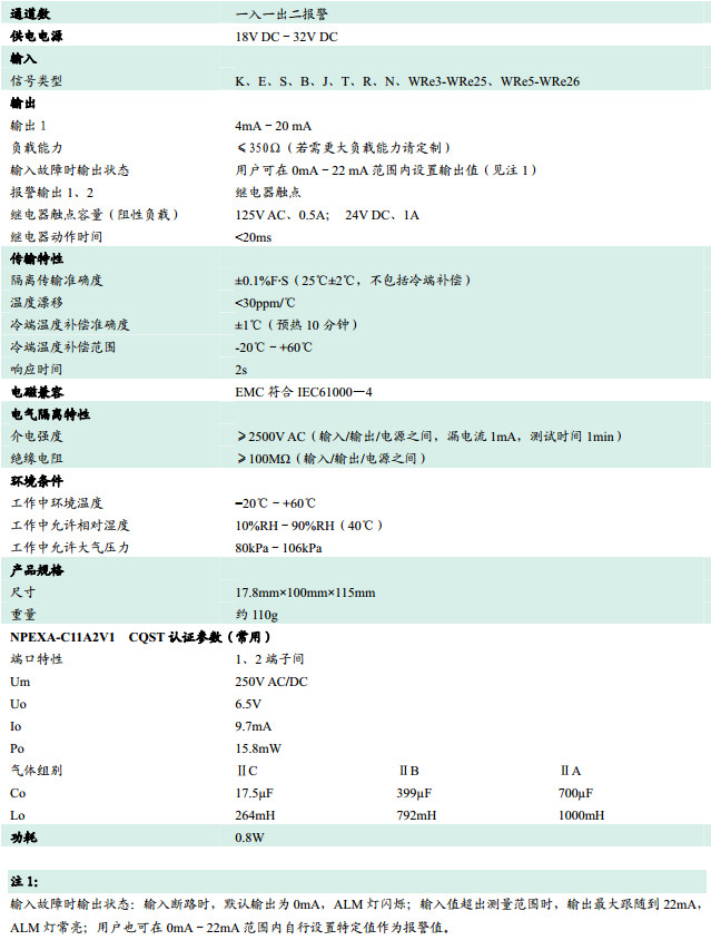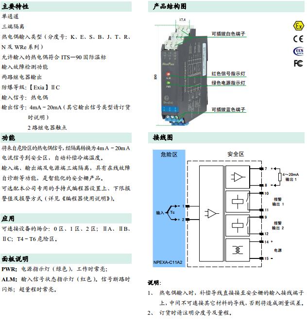 NPEXA-C11A2,檢測端隔離式安全柵