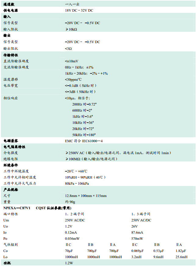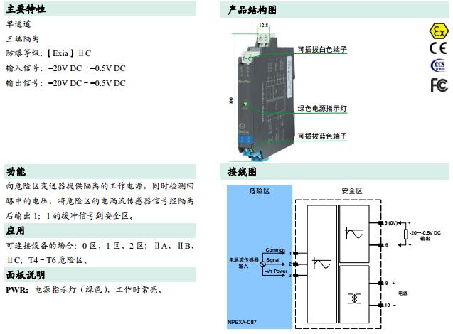 NPEXA-C87,檢測端隔離式安全柵