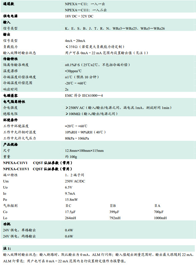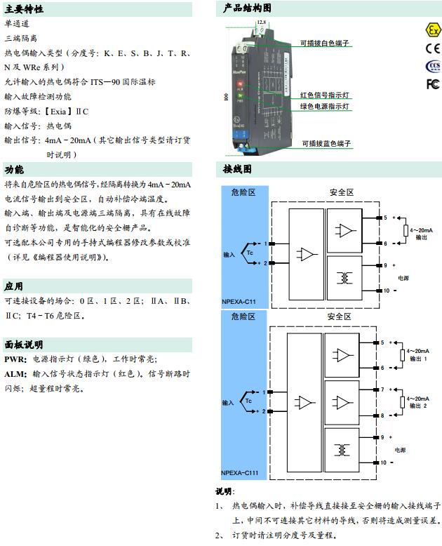 NPEXA-C11,NPEXA-C111,檢測端隔離式安全柵