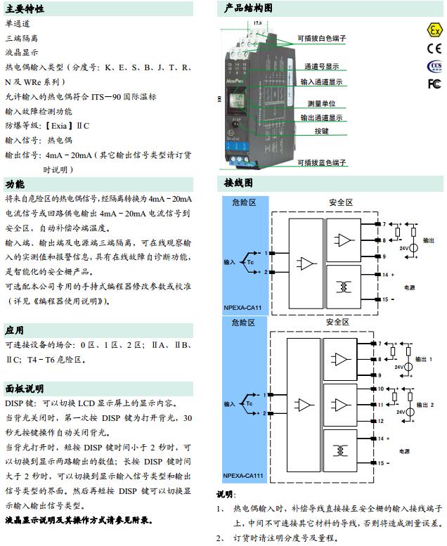 NPEXA-CA11,NPEXA-CA111,檢測(cè)端隔離式安全柵
