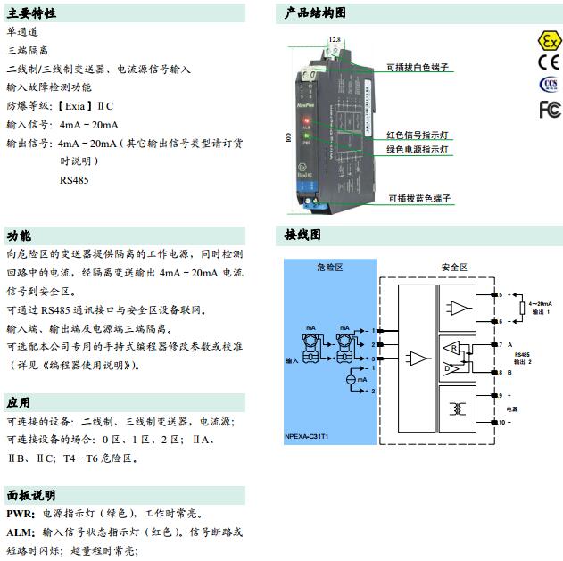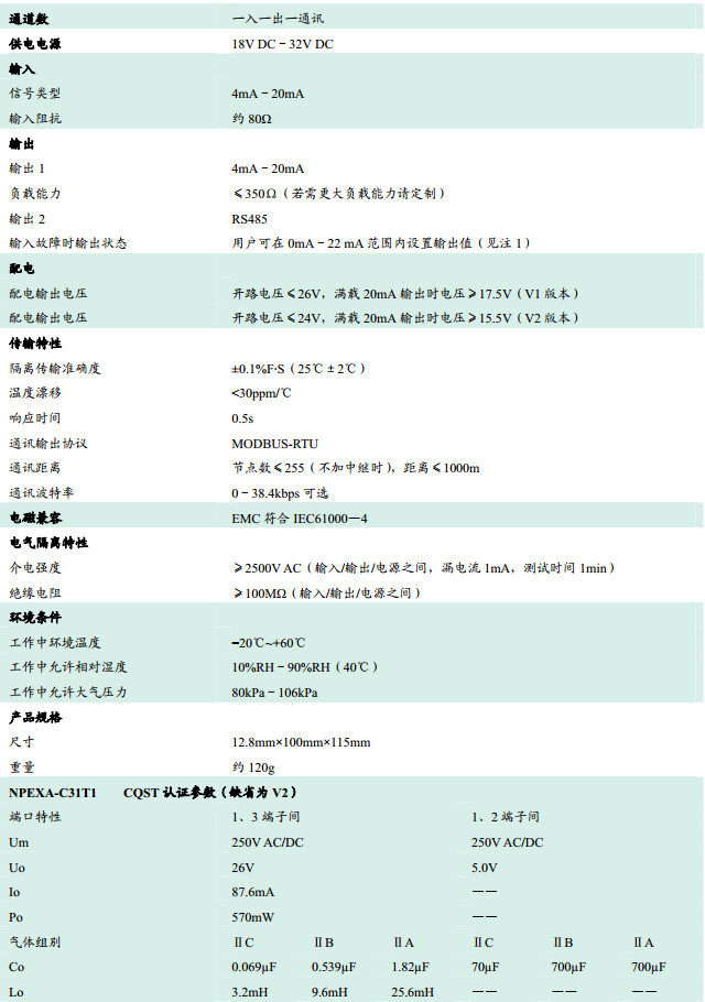 NPEXA-C31T1,NPEXA-C31T1V1,檢測端隔離式安全柵