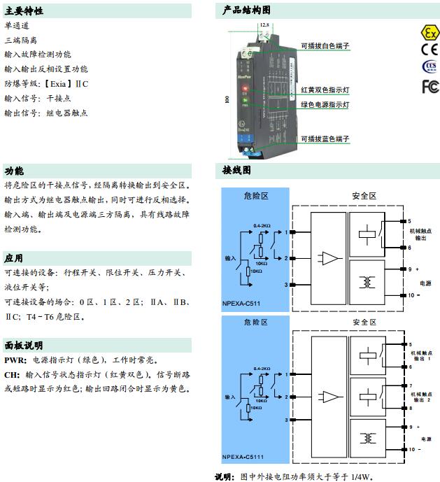 NPEXA-C511,NPEXA-C5111,檢測(cè)端隔離式安全柵