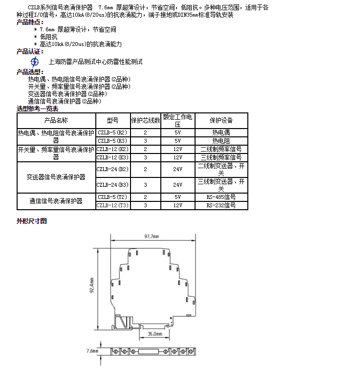 CZLB-5(R2),CZLB-5(R3),CZLB-12(K2),CZLB-12(K3),信號浪涌保護(hù)器