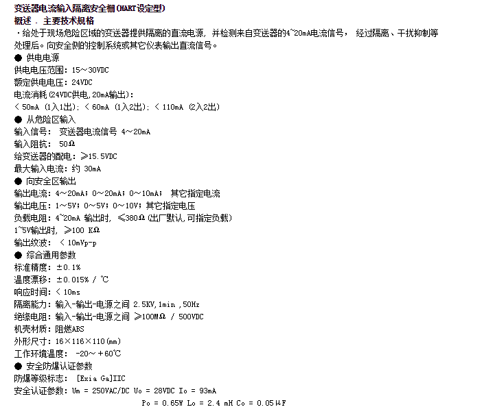KH-5900-PA,變送器電流輸入隔離安全柵