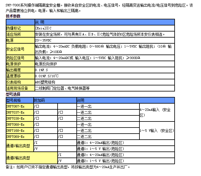 SWP7067-Ex,SWP7037-Ex,SWP7038-Ex,SWP7068-Ex,SWP7168-Ex,SWP7069-Ex,隔離式安全柵