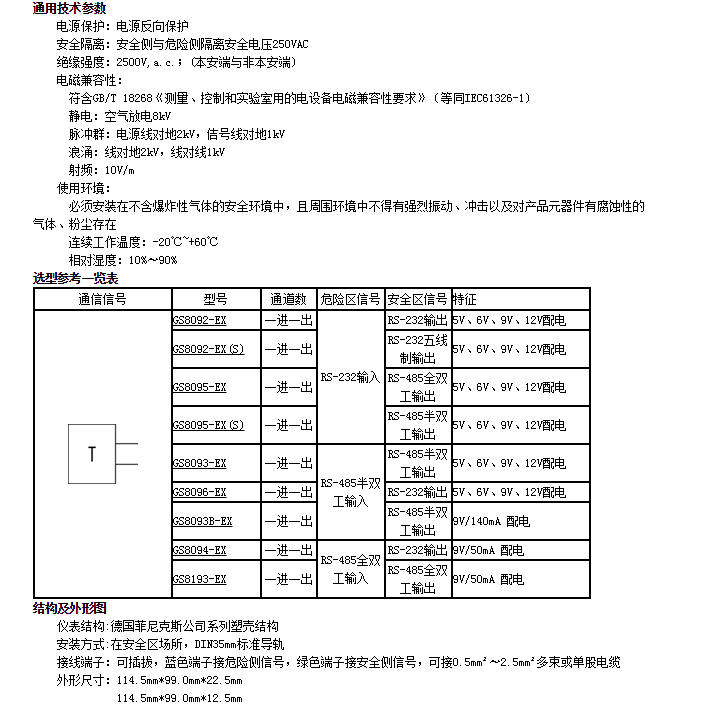 GS8092-EX,GS8092-EX(S),GS8095-EX,GS8095-EX(S),GS8093-EX,信號隔離式安全柵