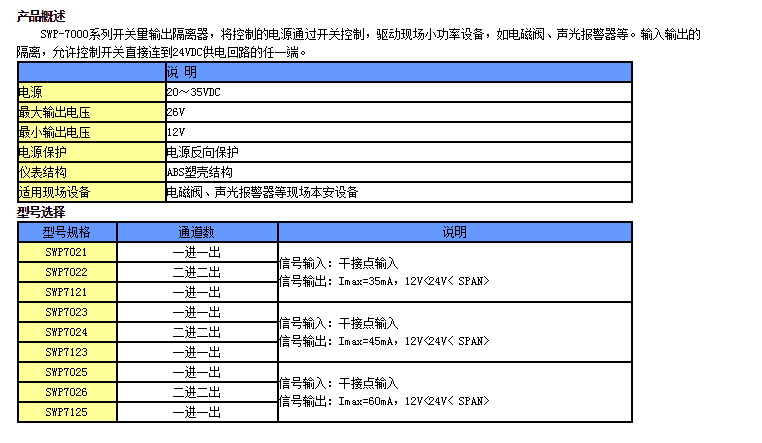 SWP7021,SWP7022,SWP7121,SWP7023,SWP7024,SWP7123,開關(guān)量輸出隔離器