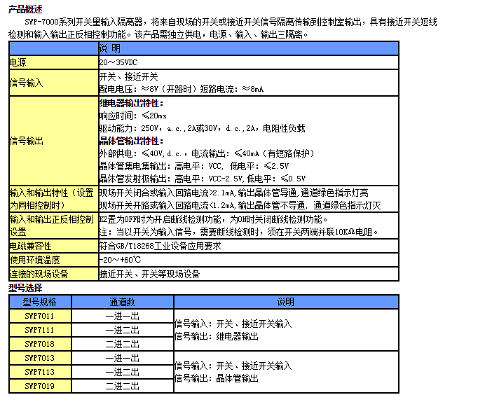 SWP7011,SWP7111,SWP7018,SWP7013,SWP7113,SWP7019,開關(guān)量輸入隔離器