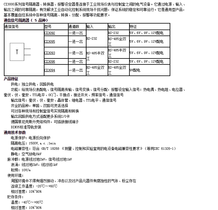 CZ3092,CZ3095,CZ3093,CZ3096,CZ3094,信號隔離器、轉(zhuǎn)換器、報警設(shè)定器