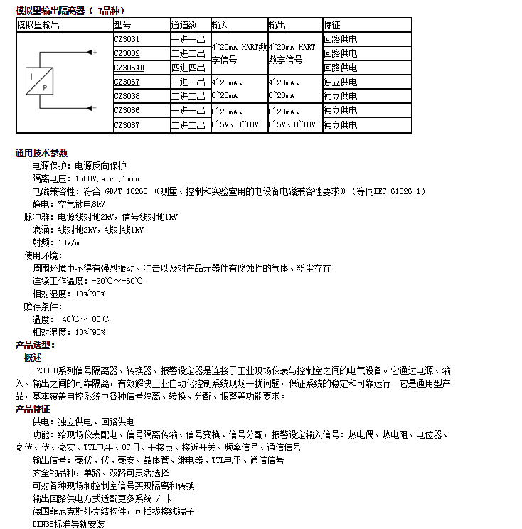 CZ3031,CZ3032,CZ3064D,CZ3067,CZ3038,CZ3086,CZ3087,模擬量輸出隔離器