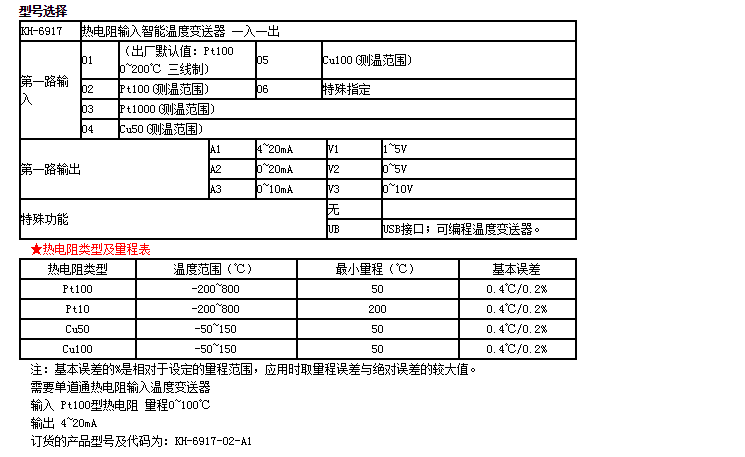 測量范圍: 見選型訂貨欄目中的“熱電阻分度號及量程表”
