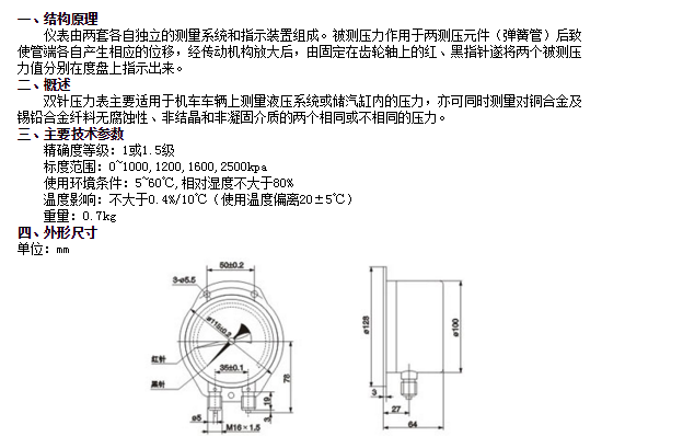 YZS-102,雙針壓力表