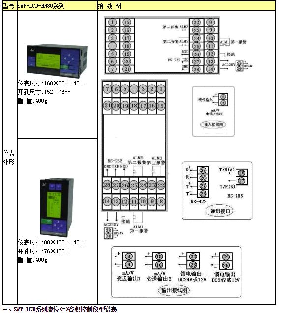 SWP-LCD-NH系列液位<=>容積控制儀可對各種形狀罐體進(jìn)行液位<=>容積轉(zhuǎn)換測量控制。