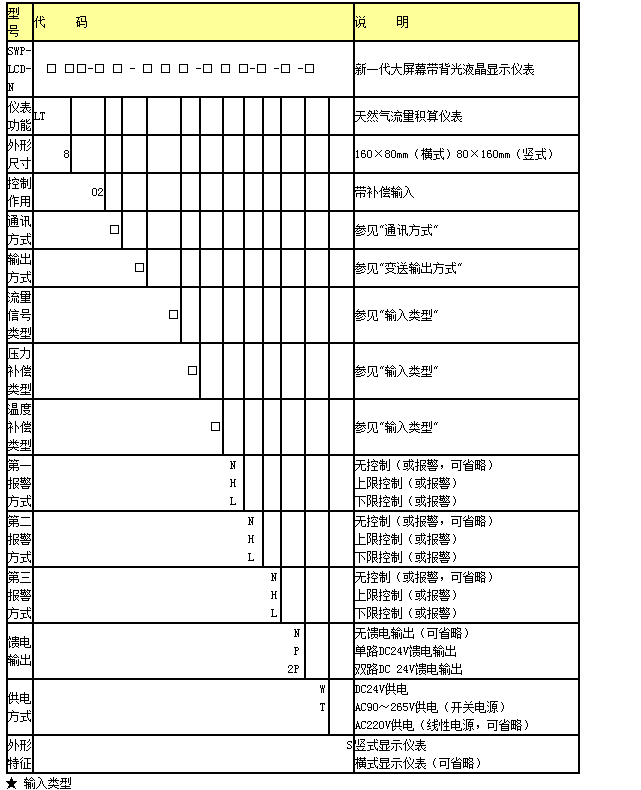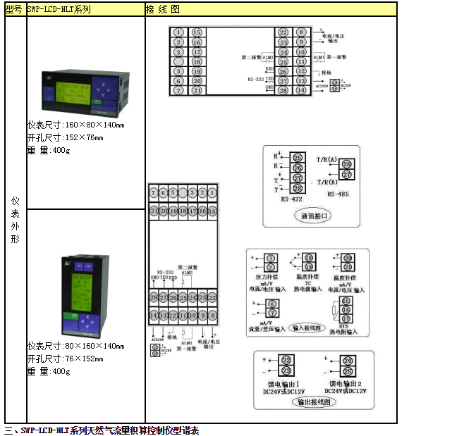 SWP-LCD-NLT(智能)天然氣流量顯示積算控制儀適用于在線測量天然氣的流量,將管道中的天然氣流量經補償、計算自動換算為工業(yè)標準狀態(tài)下的天然氣體積流量和積算量。