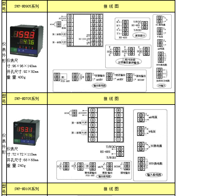 三、儀表外形及接線圖(以下為基本配線方式,特殊訂貨請參見隨機接線圖)