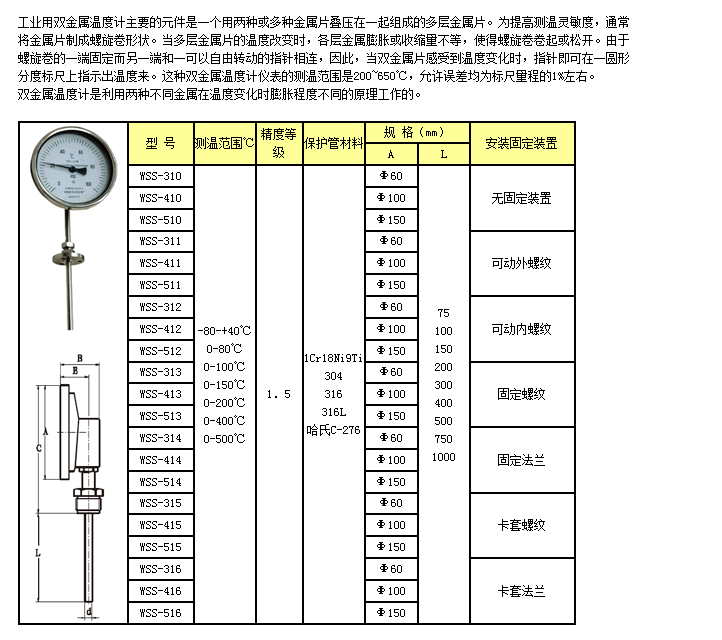 WSS-310,WSS-511,WSS-413,WSS-315,WSS-516,徑向型雙金屬溫度計