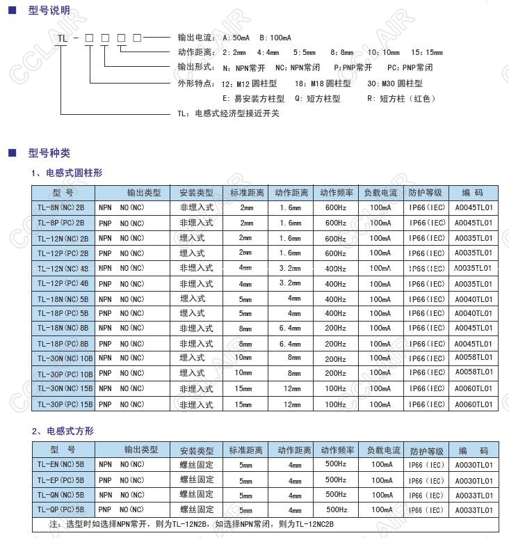TL-8N(NC)2B,TL-8P(PC)2B,TL-12N(NC)2B,TL-12P(PC)2B,TL-12N(NC)4B,TL-12P(PC)4B,TL-18N(NC)5B,TL-18P(PC)5B,TL-18N(NC)8B,TL-18P(PC)8B,TL-30N(NC)10B,TL-30P(PC)10B,TL-30N(NC)15B,TL-30P(PC)15B,TL-EN(NC)5B,TL-EP(PC)5B,TL-QN(PC)5B,TL-QP(PC)5B