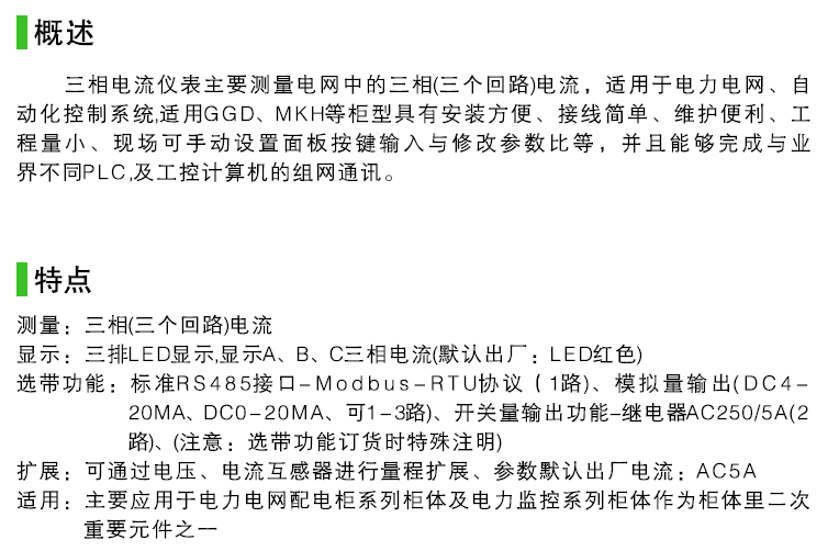二、三相數(shù)顯電流表產(chǎn)品特點