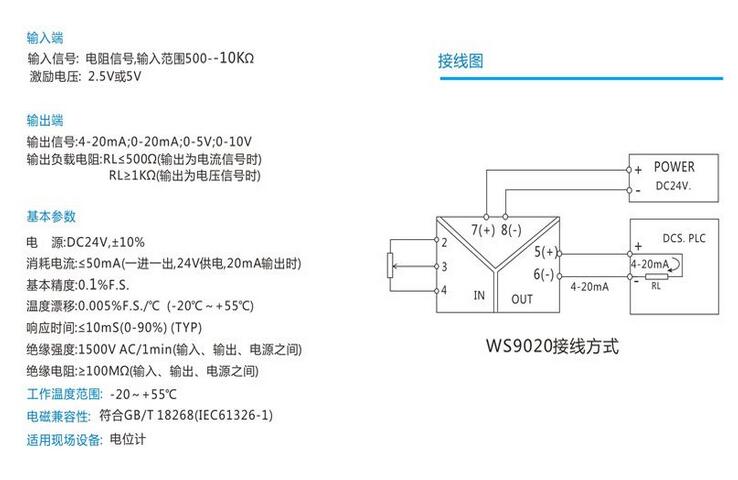 WS9020電位計(jì)變送器 電位計(jì)隔離器技術(shù)參數(shù)詳細(xì)介紹