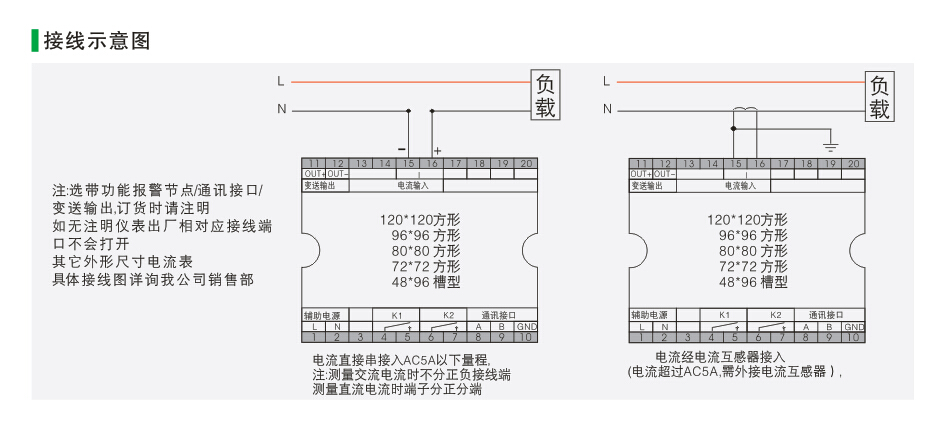 .單相電流表 產(chǎn)品概述 96方形 外型尺寸:96*96mm 開孔:91*91mm