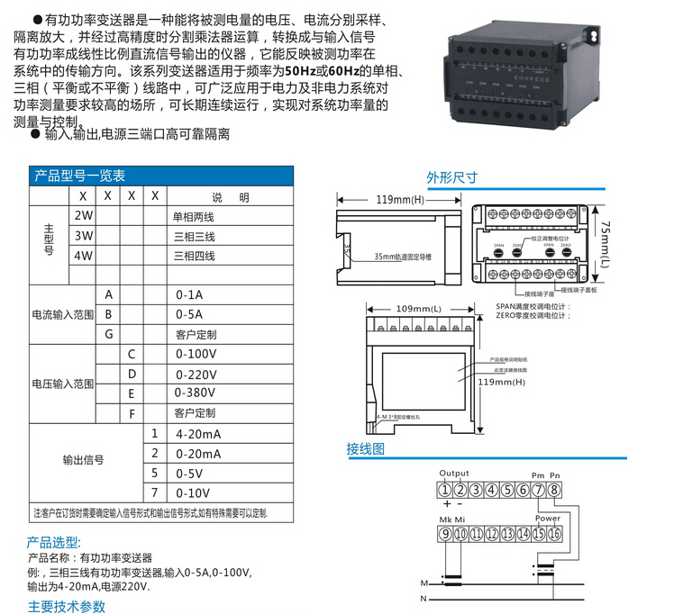 JD204P有功功率變送器輸出范圍:DC4-20mA、0-20mA、0-5V、0-10V等用戶(hù)需